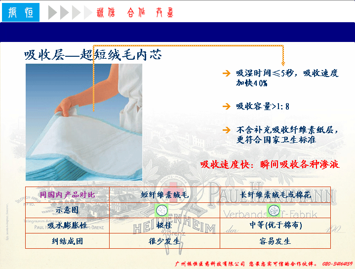 夹层:高吸收纤维素绒毛层,超强吸水能力并安全锁定液体优势:夹层:短绒毛纤维,不易纠结成团;吸水性强