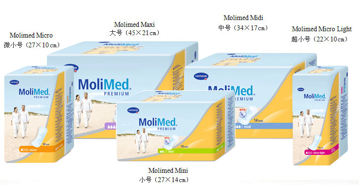 名称 规格cm 包装 Molimed Maxi 大号 45×21 14片/包 Molimed Midi 中号 34×17 14片/包 Molimed Mini 小号 27×14 14片/包(独立包装) Molimed Micro 微小号 27×10 14片/包(独立包装) Molimed Micro Light 超小号 22×10 14片/包(独立包装)产后恶露的情况